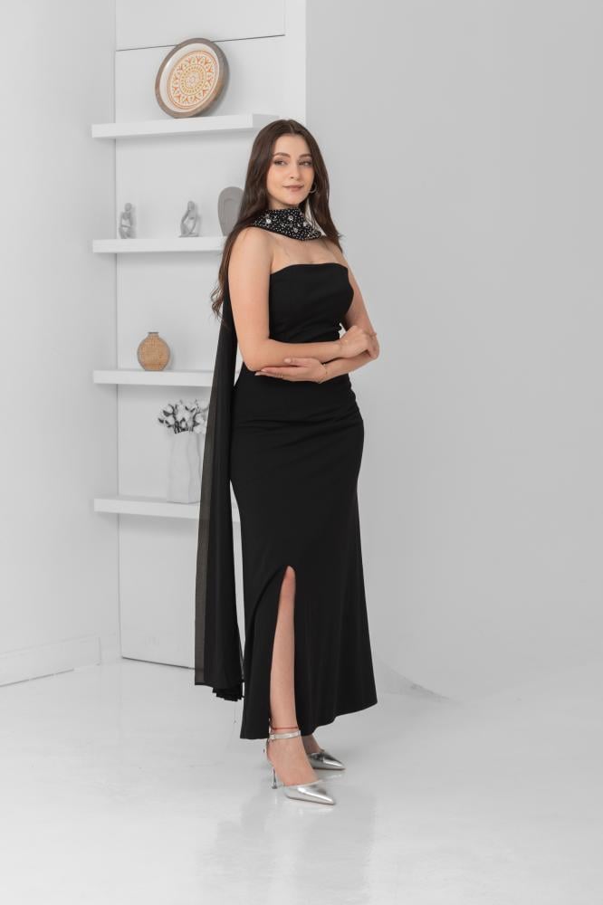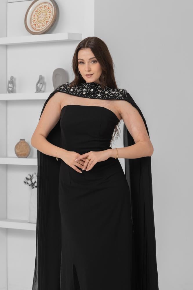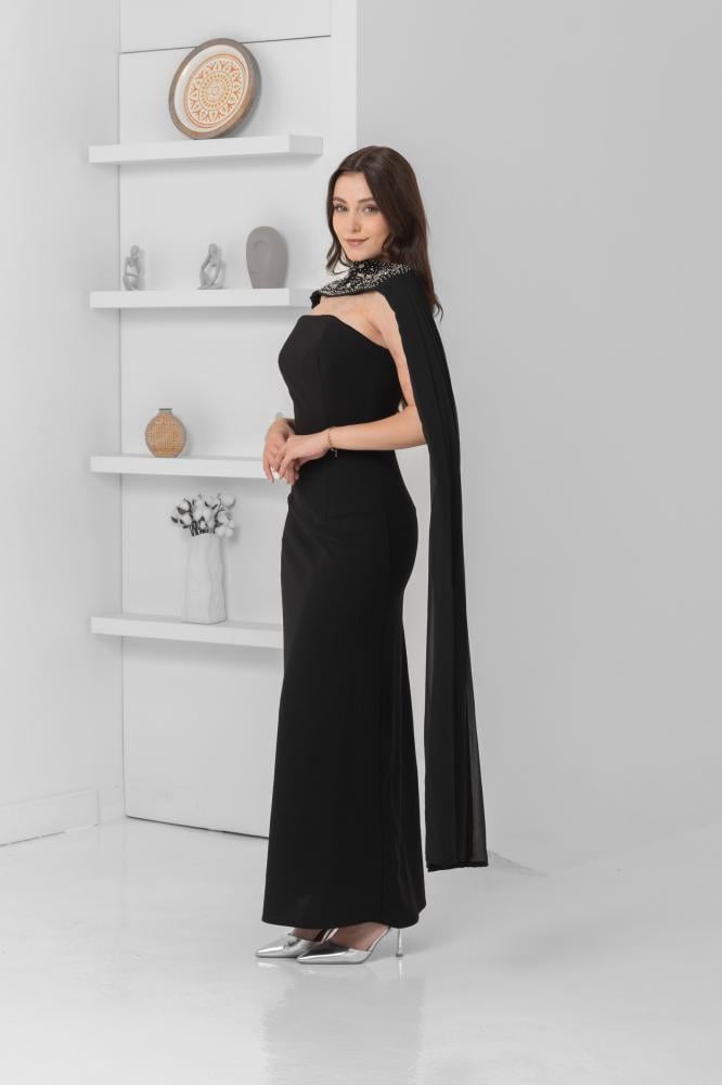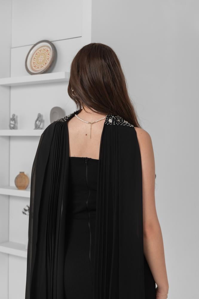 • طريقة التفصيل : قامش الكريب المتميز بشال البارز .