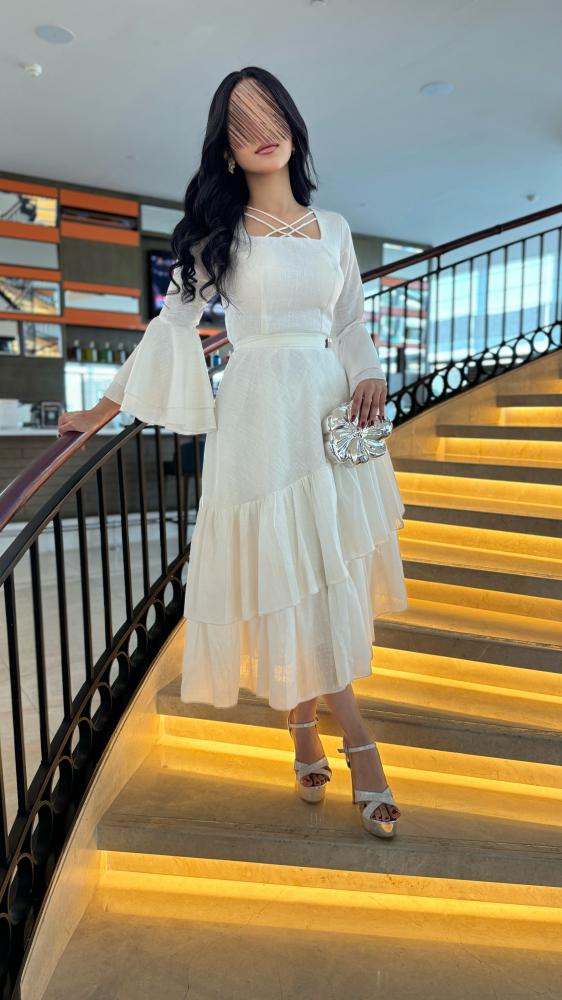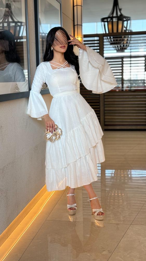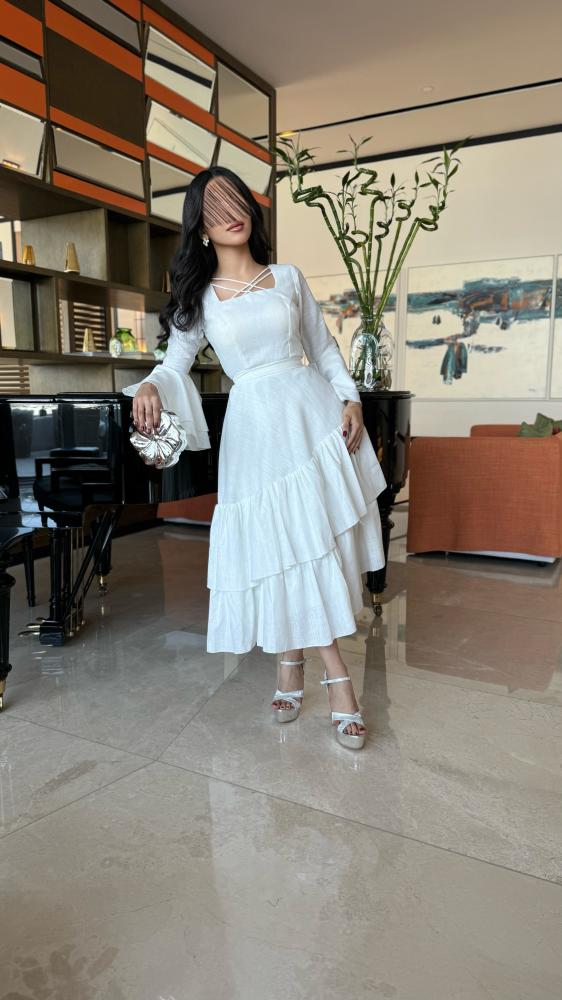 • التفاصيل: فستان ميدي ناعم كسرات اسفل الفستان