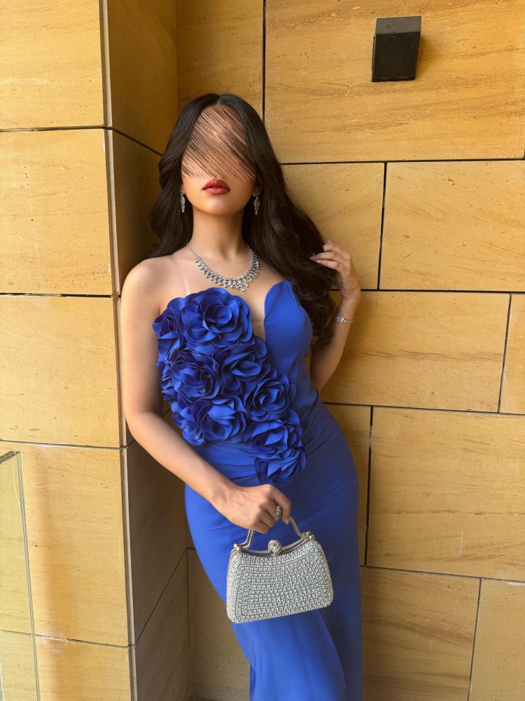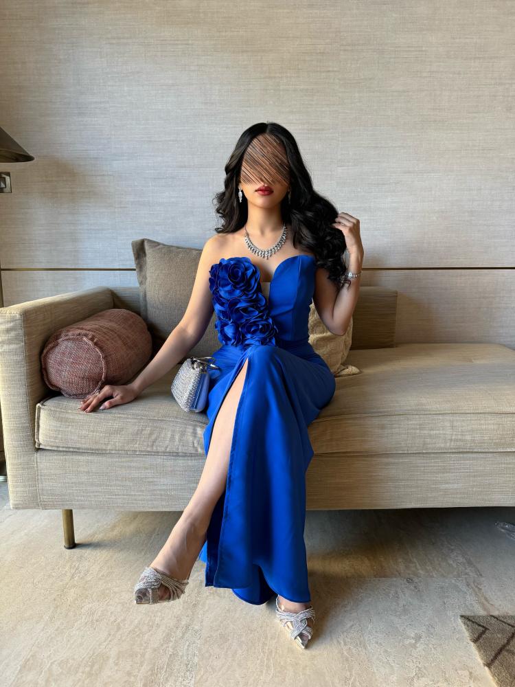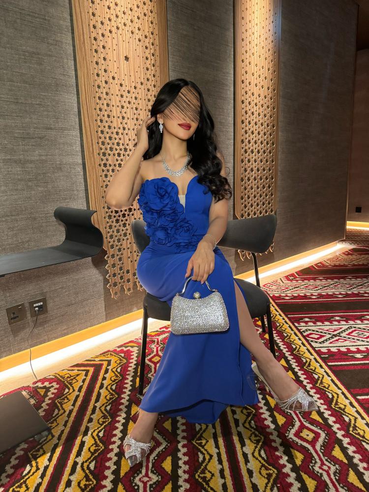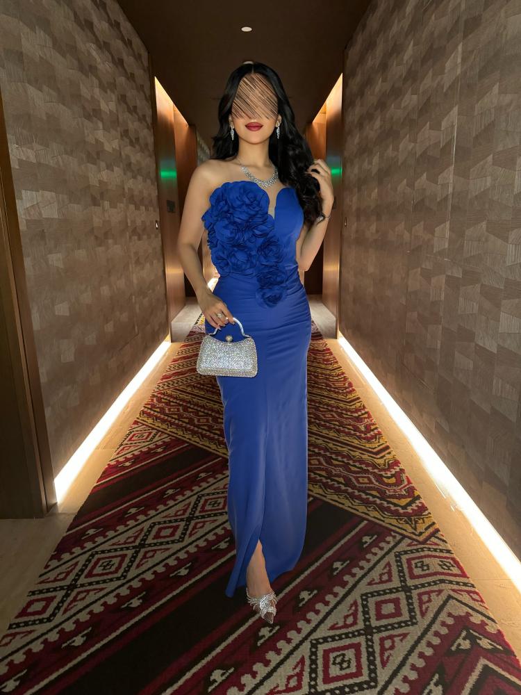 • التفاصيل: فستان كريب بتداخليه الورود بالكتف