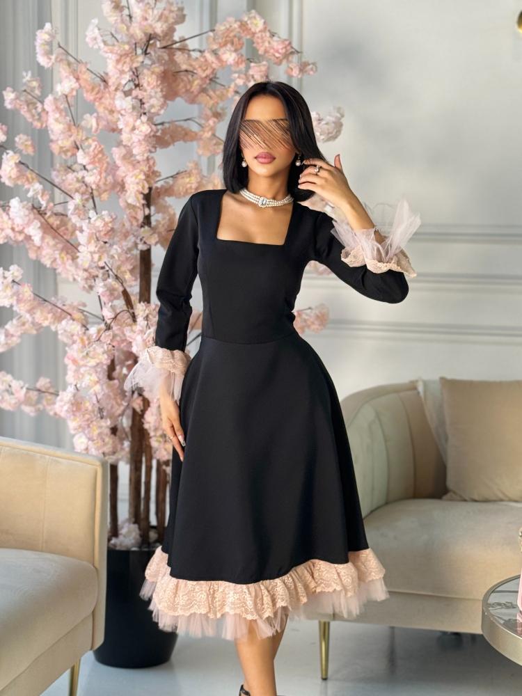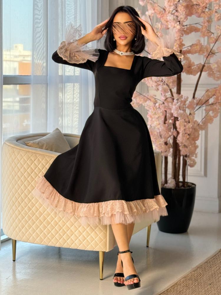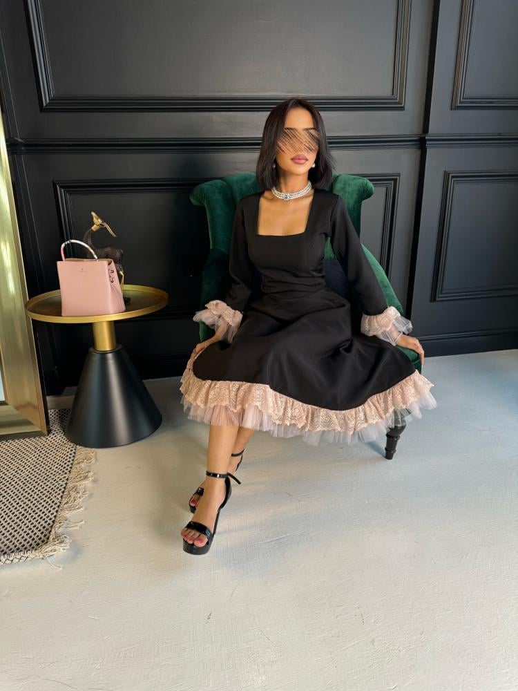 فستان اسود فخم قصير واحد من أجمل الفساتين بتصميم فخم وعصري مُصنوع بإحترافية وجودة عالية يمكنك طلبه الان بأفضل سعر من خلال موقعنا هيلة .