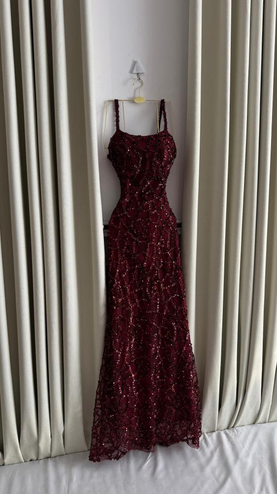 فستان لورين — ترتر عنّابي فاخر