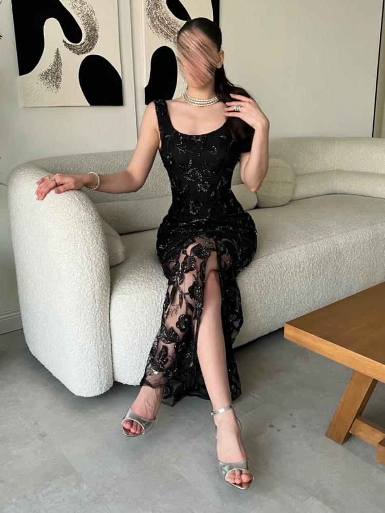تميّزي بحضور آسر مع هذا الفستان الراقي الذي يجمع بين فخامة القماش ودقّة التفاصيل. صُمّم من قماش سهرة فاخر مشجّر مطرز بتفاصيل لامعة تضفي لمسة ملكية، ومبطن من خامة الباربي الناعمة لتوفير انسيابية مريحة وشكل انسيابي أنيق.