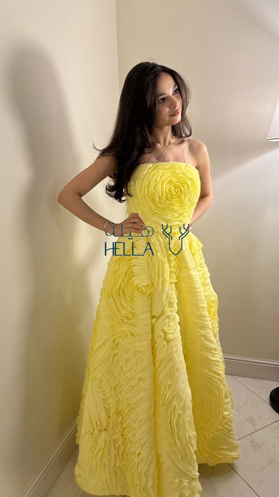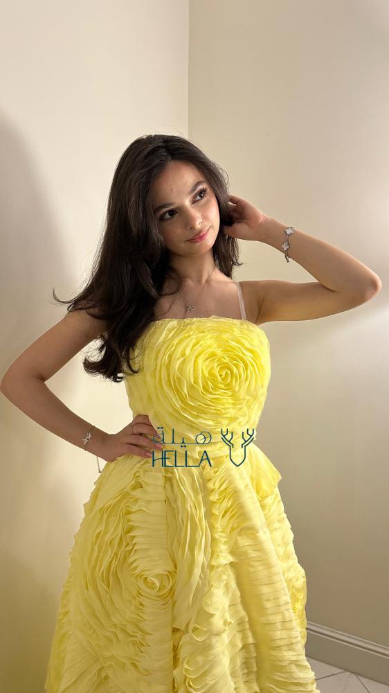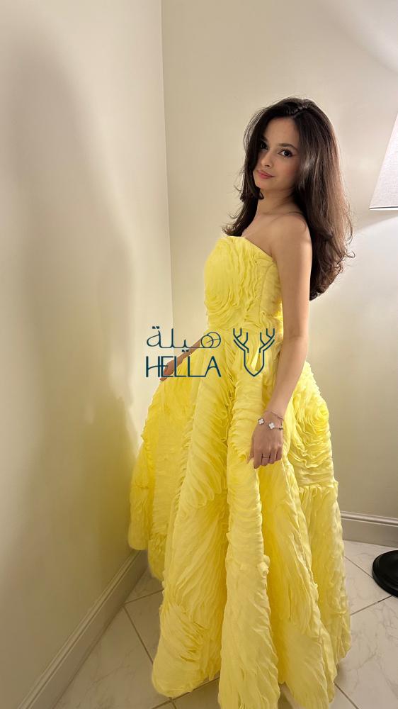فستان سهرة فاخر بتصميم ملكي راقٍ، مصنوع من شيفون كريشة فاخر يمنح إطلالة أنثوية جذابة.